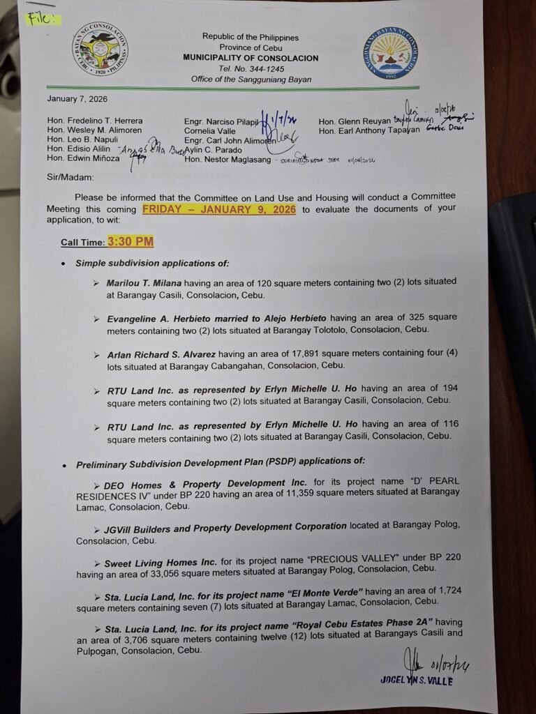 COMMITTEE MEETING ON LAND USE (Jan. 16, 2026) 1:30PM – 3rd Floor, SB Cubicle